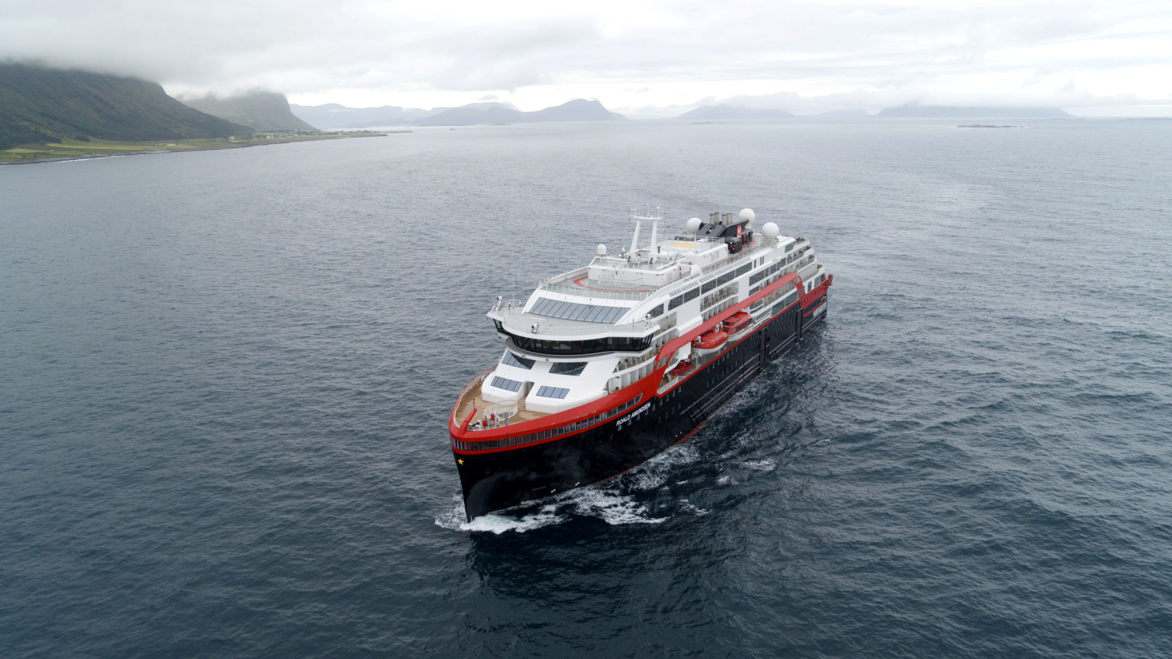 The MS Roald Amundsen will be able to run on batteries for around 45 to 60 minutes at a time, which Hurtigruten says will lower CO2 emissions by about 20 percent.
